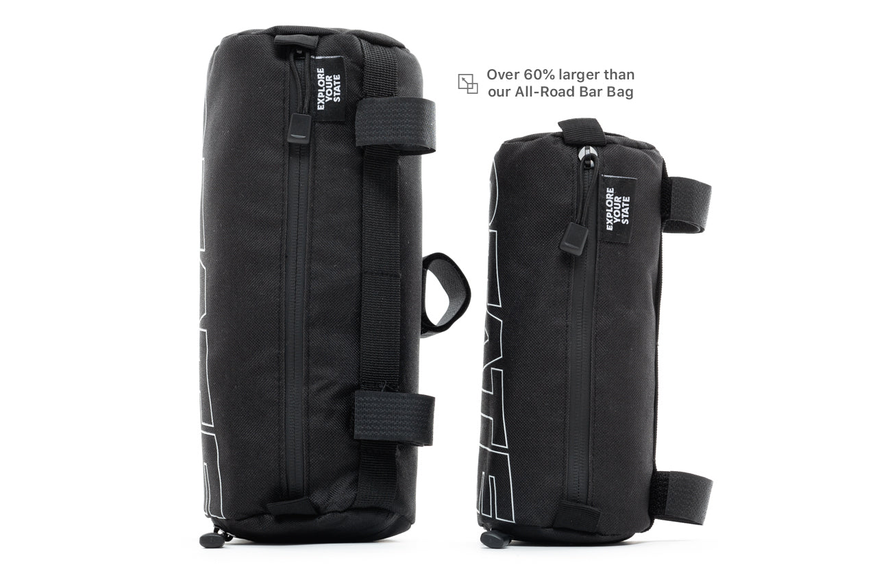 Over 60% larger than our All-Road Bar Bag. Perfect for XL adventures on the road and trails.