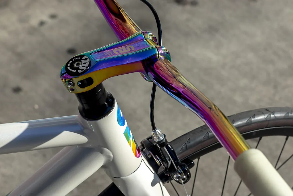 Race-Inspired stem with Oil Slick color splash